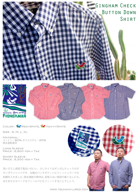 2014NEW!! Gingham Check Button Down Shirt (ギンガムチェック ボタンダウンシャツ) Color : Red×White, Navy×White Size : S, M, L, XL