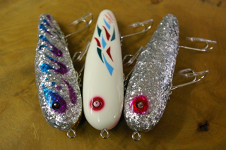 \8,140 taxin ターンしながらのポッピングに加えて、ショートジャークすることでほぼ直線的に移動しながら絶妙なスプラッシュを上げる、 ソニック・ヴィータはそんなポッパー。もちろん実績も十分。 2ndヴァージョンは、ベリーのえぐれに加え、Lリグからサーフェイスリグになったことで、 そもそも高かったスナッグレス効果にさらに磨きがかかった。 ことにウィード周辺では威力を発揮。少々のウィードならば物ともせずにアクション出来る。 また、ご覧のように2ndヴァージョンは1stにはなかったシリコン・スカートが大きな特徴。 これが常にゆらゆらと艶かしくアピールするのはもちろん、これによってジャークした際の直進性が目をみはるほど良くなった。 ちなみに邪魔ならばドライバ−1本で取り外せる仕組みになっています。取り外すとテーブルターンがよりイージー。 ところで、このプラグの製作が進行する間に、あの工房の火事から10年が過ぎた。 そんなわけで、火事から復活を遂げ、今も尚継続していることを記念して、Fire Redというパターンを塗ってみた。 災厄から一年目にTobaccoというプラグにこの赤一色を塗り、二年目にはMighty Eddy Miniにこれを塗った。 記憶が正しければそれ以降塗っていないと思われるこのカラーを、十年目に再登場させることに。 サインとは別に手描きで不死鳥よろしく鳥の絵を入れてある。 火事の前もその後も津波ルアーズのファンでいてくれた皆さん、火事以降にファンになってくれた皆さん、 とにかく支えてくれる全ての皆さんに感謝します。 ![]() |