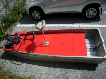 2009年式 ワンオーナー、ワンシーズン使用 〜中古セット内容〜 船体、バウデッキ、ハーフデッキ仕様、浮力体マリンカーペット貼り(ブラック)、モーターガイド FW54V(無段変速) 充電器(BASS CHARGER 10)、バッテリーボイジャー105A(新品)、延長コード、シートセット、パドル 店頭受け渡しのみ \120,000+TAX Sold Out *詳細*