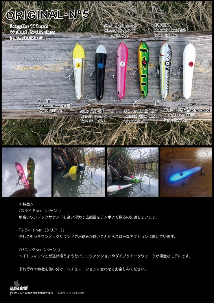 2016NEW!! フニャーン 62mm/15g± \2,090 taxin カラー: スケルタル、 ![]() 通常の中空フロッグには珍しい大きなヘッドが今までにないまるでペンシルベイトのようなロングスライドをこなします。 またラインを張ってロッドを煽るとスプラッシュも放ちます。 そして独特のフックポイントが抜群のフッキング性能を発揮します。 . |