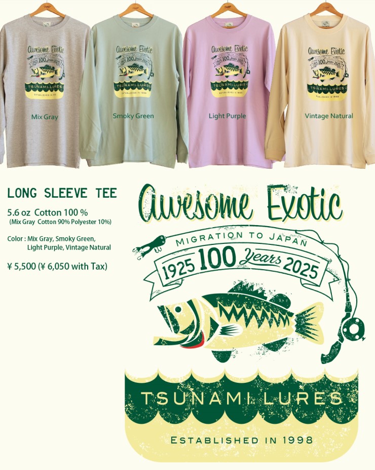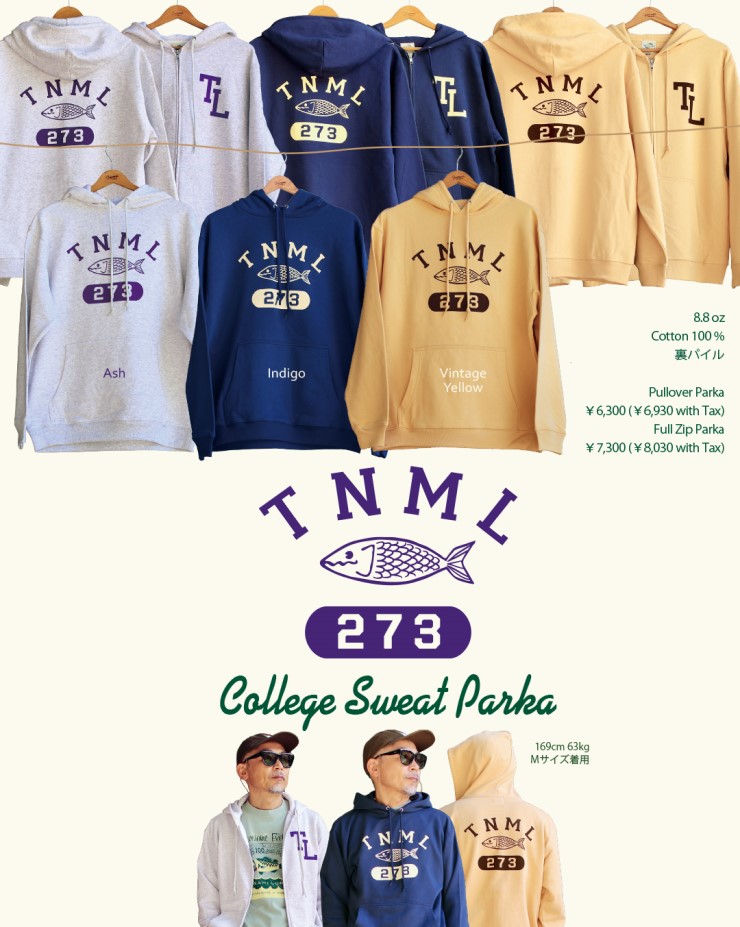 11月上旬〜中旬頃発売予定! ご予約受付は10/20(月)PM6:00で締め切らさせて頂きます。 受注生産品の為、ご予約締め切り後のご注文には対応出来ませんので予めご了承下さい。 また、ご予約後のキャンセルはお受け出来ませんので、サイズをよくご確認の上、ご注文ください。 宜しくお願い致します。 2025NEW!! 受注生産 TNML Fish Fleece Vest TNML フィッシュ・フリース・ベスト Color : Natural, Navy Size : M, L, XL, XXL Price : ¥ 6,600 (¥ 7,260 with Tax) Smooth & Warm マイクロフリースベスト 胸ポケットにTNML Fishのワンポイントをあしらった、マイクロフリースのベストです。 保温性に優れた柔らかで滑らかなマイクロフリースは、普段使いはもちろんアウトドアアクティビティに相性抜群。 レイヤリングがしやすい厚みと軽さなので、ミドルレイヤーにもアウターにも、気温によって色々な着こなしが可能です。 胸ポケットに加えて、ハンドウォーマーにもなる何かと便利なサイドポケット付き。 ※ご覧いただく環境によっては実際の商品と色味が異なる場合があります。 ※画像のサンプルと製品は一部仕様が異なる場合があります。 ![]() ![]() -------------------------------------------------------- 2025NEW!! 受注生産 TNML College Sweat Parka TNML カレッジ・スウェット・パーカ Color : Ash, Indigo, Vintage Yellow Pullover Parka ¥6,300 (¥6,930 with Tax) Full Zip Parka ¥7,300 (¥8,030 with Tax) カレッジロゴの8.8oz裏パイルスウェット クラシックかつTsunami Luresらしいカレッジロゴが映える、8.8ozスウェットパーカです。 新しく採用した8.8ozと若干薄めの裏パイル地スウェットは、ロングシーズンをカバーするには絶妙な厚み。 秋口から春先までしっかりとあたたかさをキープしつつ、リラックスした着心地を提供します。 よりフレキシブルなジップアップとお手軽なプルオーバーはお好みで。 ※ご覧いただく環境によっては実際の商品と色味が異なる場合があります。 ※画像のサンプルと製品は一部仕様が異なる場合があります。 ![]() ![]() -------------------------------------------------------- 2025NEW!! 受注生産 Awesome Exotic Long Sleeve Tee オーサム・エキゾチック・ロング・スリーブ・ティー Color : Mix Gray, Smoky Green, Light Purple, Vintage Natural ¥ 5,500 (¥ 6,050 with Tax) 100年の奇跡の旅を、Tシャツに。 1925年、赤星鉄馬氏の手により日本に渡ったAwesome Exotic = ブラックバス。 その100年にわたる奇跡を、Tsunami Luresの視点で描いたメモリアルTeeのロングスリーブヴァージョンです。 2018年に好評を博した "Awesome Exotic Tee" をベースに、100年のヘリテージを意識したエイジング仕様のレトログラフィックを、クラシックなコットンTシャツに落とし込みました。 着心地と素材感に定評のある 5.6oz ロングスリーブTeeは、少しオーバーサイズでアウターに、もしくはインナーにも、レイヤード自在のアイテムです。 ※ご覧いただく環境によっては実際の商品と色味が異なる場合があります。 ※画像のサンプルと製品は一部仕様が異なる場合があります。 ※洗濯によって縮む場合があります。 |